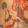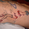 I picked this particular spot for the piece because it's not hairy. I hate seeing pinup girl tattoos covered with hair. It just ruins the effect.