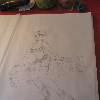 Shannon is going to do the background with little or no black outlining, which should suit it well. So today she just did line work in the lightest color that appears in the image. Darker colors will be filled in later. Of course the rib area was fun as always.