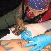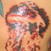 The first photo shows Shannon holding up the paper towel that she used for blotting excess ink. It looks sort of like a Rorschach inkblot test. The other picture shows the tattoo at the end of the session.