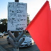 The next morning, I got up and decided to walk to the office. There were other people from the meeting staying at the same place, and they offered me a ride, but I thought that the walk would be entertaining. I saw the Animal Art Gallery, with dog photographs by ‘the dogumentarian‘. I saw seagulls perching on top of the train station. And I saw an intersection where the city provided orange caution flags for pedestrians to use while crossing the street. The light poles on each side had tubes welded to them to serve as flag holders.