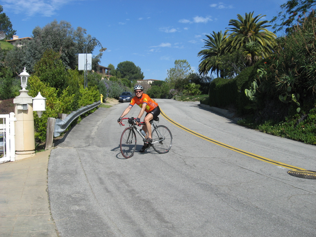 I got an action shot near the South Pasadena water tower. One of the houses there had a flat-topped mailbox that I could balance the camera on for a picture.