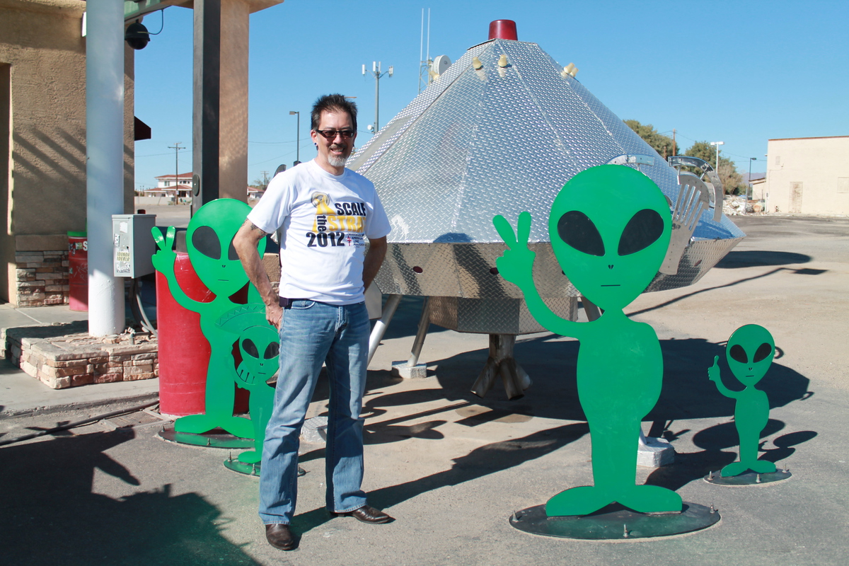 On the way there, we stopped at the beef jerky place in Baker. Kathleen likes their jerky a lot. And it’s a chance for a photo-op with the alien.