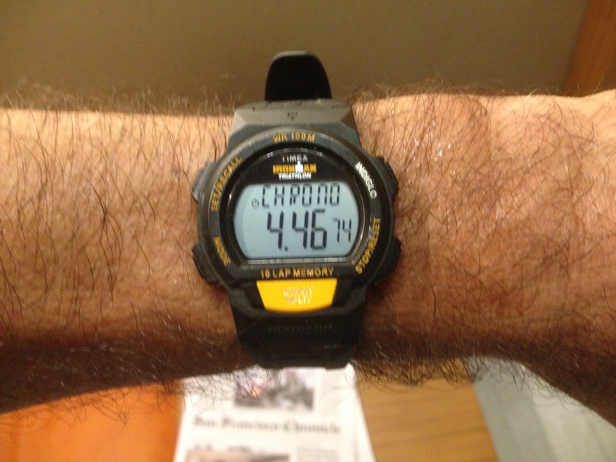I started out doing my regular relaxed pace of 4 1/2 floors per minute. That got me to 20 in about 4:20 – 4:30 each time, and I was able to maintain that pace for the first five climbs. The next two, I slowed down slightly, but then, on the eight time up, I kind of fell apart. Climbs 8-11 were very hard.
