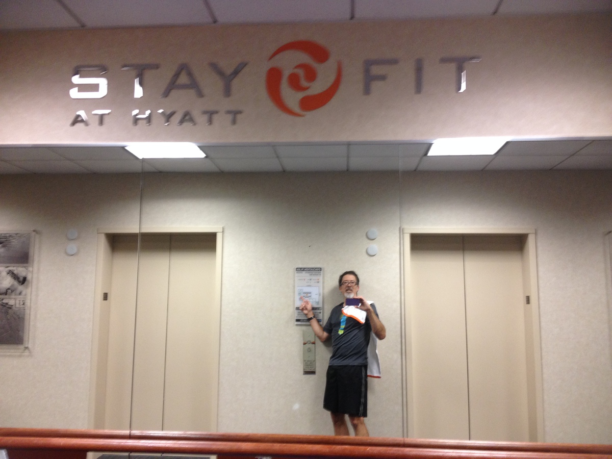 They close the door to the stairway at 7:15. I think that’s kind of silly, since they advertise the practice session as lasting until 7:30. So I was racing that deadline when I headed up for the 11th time at 7:08. I made it to the top, took the elevator ride back down, and ran back to the start just in time to hear the click of the latch as they closed the door. So the Vertical Kilometer was not to be tonight.