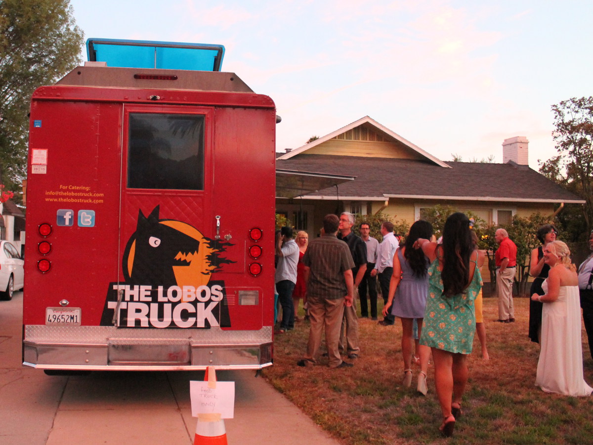 Afterward, it was time to eat. We’d arranged to have the Lobos Truck do the food. We’ve seen them at ArtWalk and other events, but we’d never eaten there, owing to their always having a long line. We took that to be a recommendation, and the food turned out to be pretty good. The only downside to it was that it took a fairly long time to serve everyone, since they cooked each one to order. But it was good.