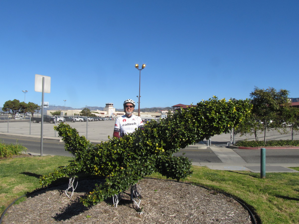 The ride out was pretty much our standard route across Eagle Rock. When we got to Burbank, we saw the F-104 in the park. Then we headed to the airport. Sadly, we can’t go see the tortoises any more. When we got to the airport, we could see that the new topiary was pretty much filled out. It’s pretty much back to what it was before they had to replace the bush in it. You can see what it looked like early after the replacement here. And for comparison, here’s what it looked like with the old bush.