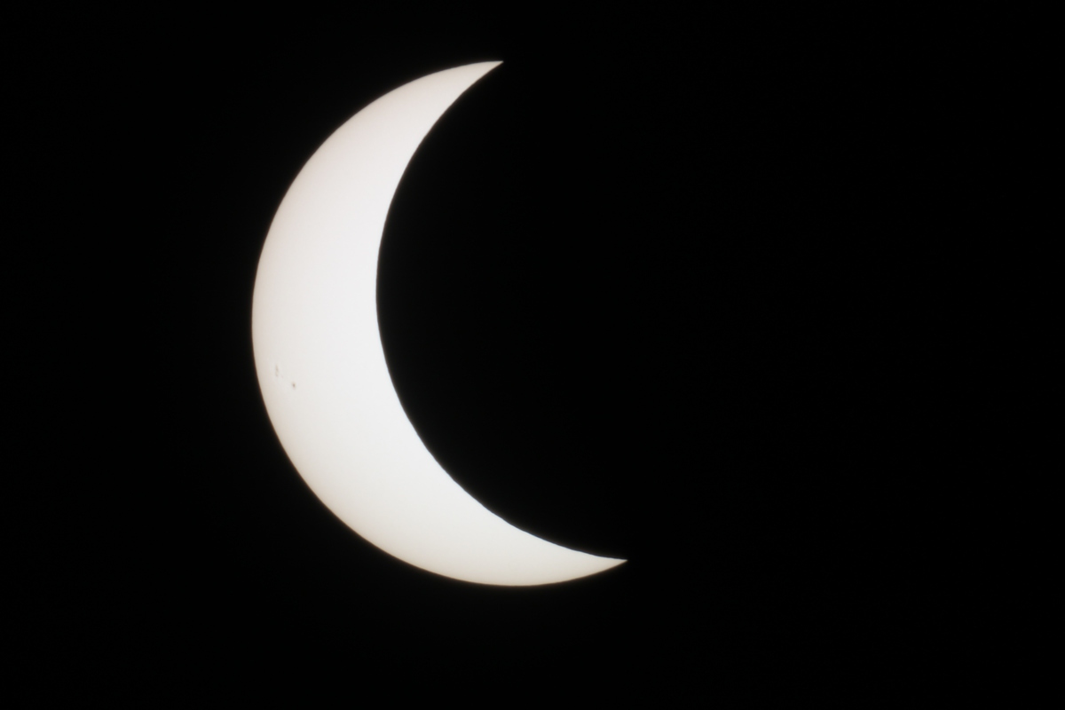 I snapped a few pictures of the sun through the solar filter just to see what it looked like, and to get the camera settings right. I’d used the filter before for the transit of Venus, and also a partial eclipse in 2012. But since I’d never seen a total eclipse before, I knew that I’d be guessing about the settings when that time came.