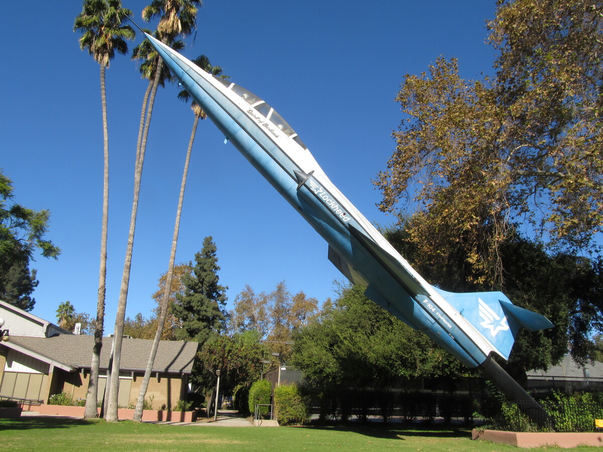 Today’s bike club ride was the Airplane ride. A quick trip to Burbank to see the F-104-on-a-stick in the park on Olive Ave, and then to the airplane topiary at the entrance to Burbank Airport. It was a perfect day for riding.