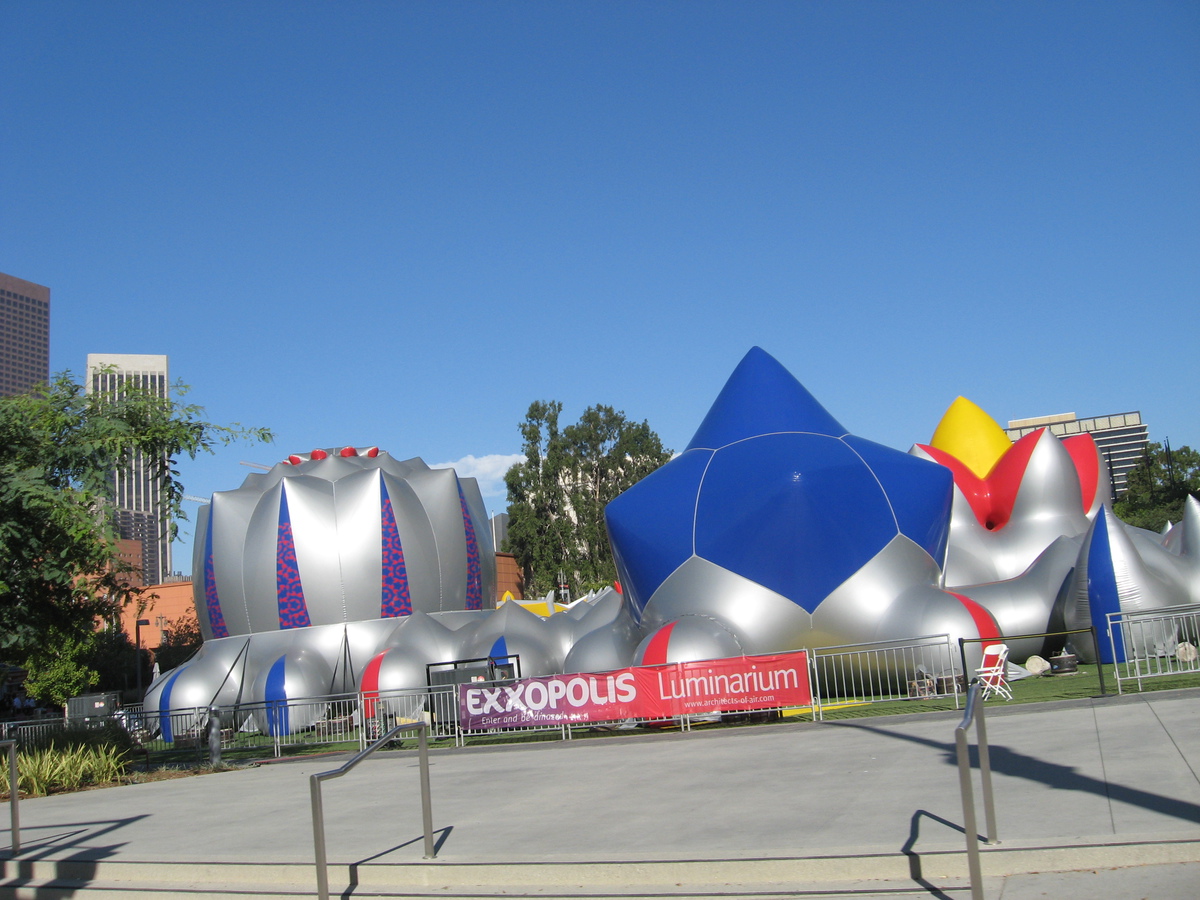 A few weeks ago, we went out to see the “Spheres” art project under way in MacArthur Park. That weekend, they were in the process of installing the painted balls on the lake in the park. So this week we went to see the completed piece.