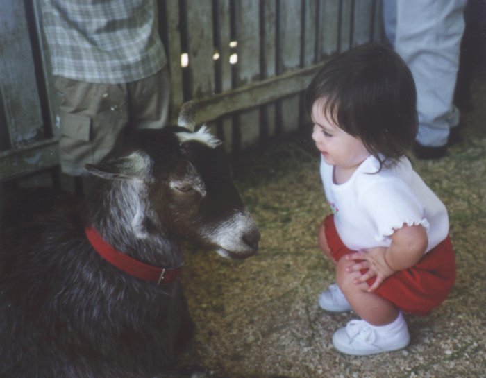 With a goat at the Adventure City petting zoo.