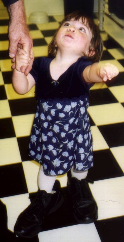 Trying on Grandpa Schwarz's shoes