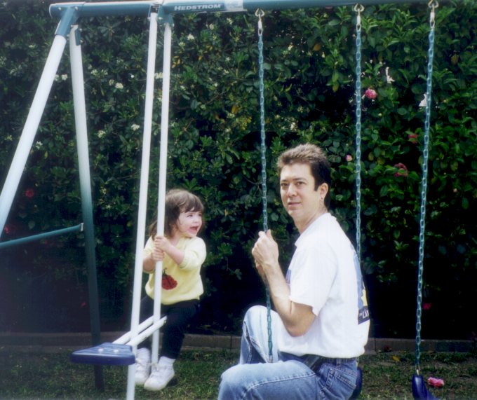 Playing on her new swing set