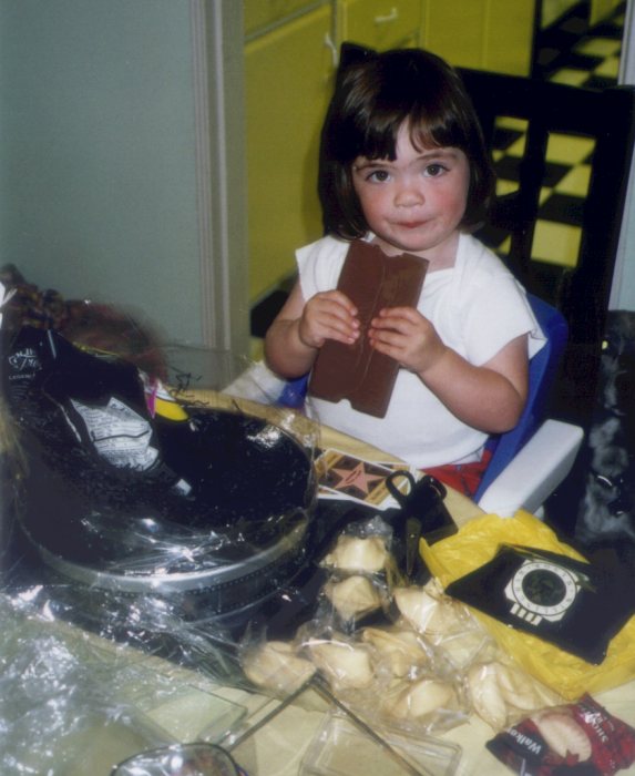 Posing with the gift basket she got for doing the Kaiser photo shoot.