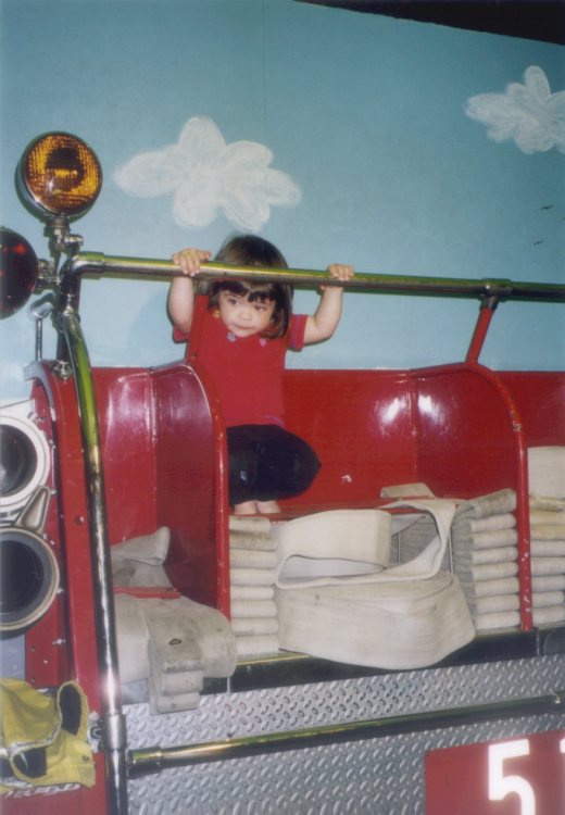 Climbing on the fire truck at Kidspace.