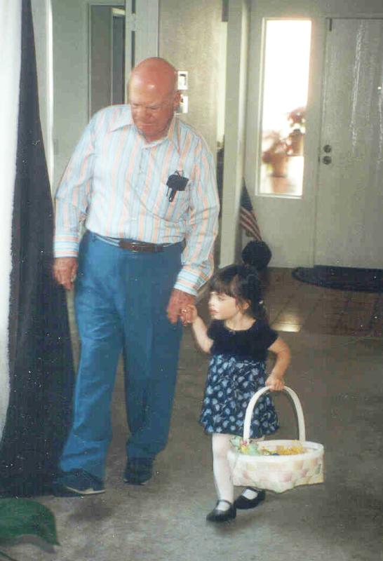 Grandpa Tarantino helped Lucinda look for the eggs.