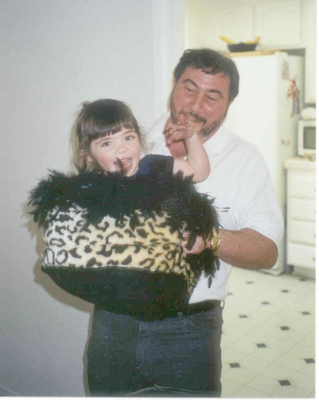 Uncle Larry gave Lucinda a ride in the cat bed.