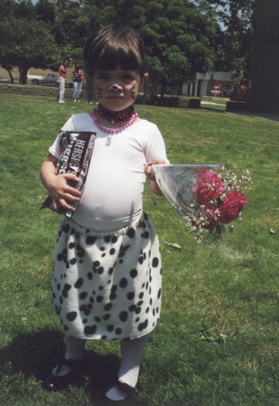 With her flowers and chocolate after the recital.