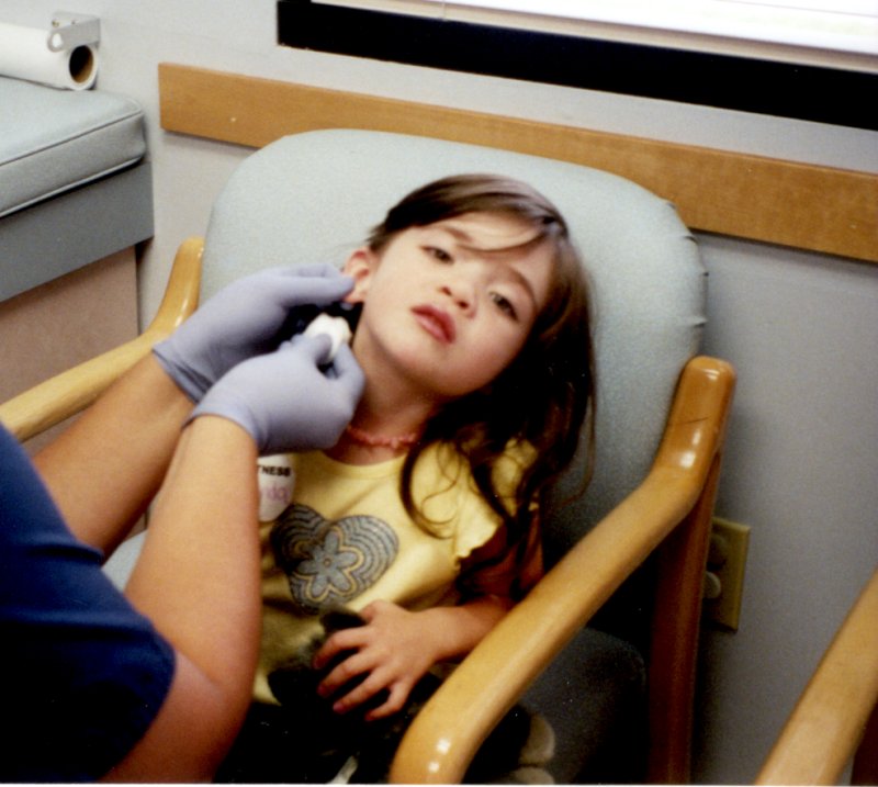 Lucinda got her ears pierced. [And yes, it was
