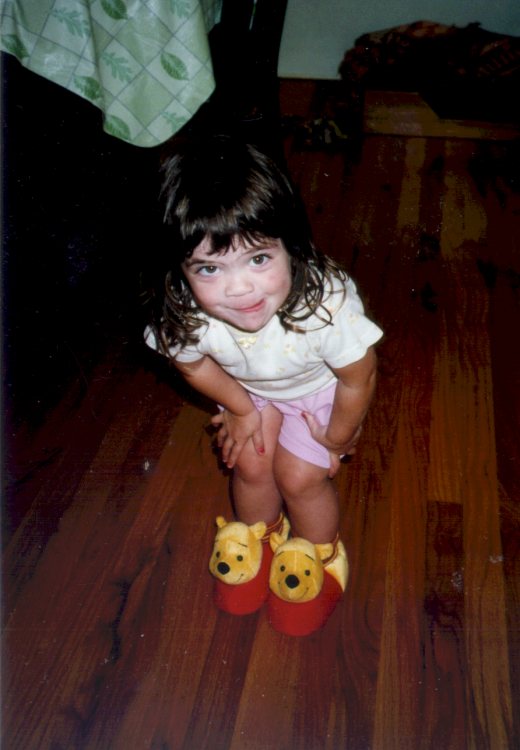 likes her Pooh slippers.