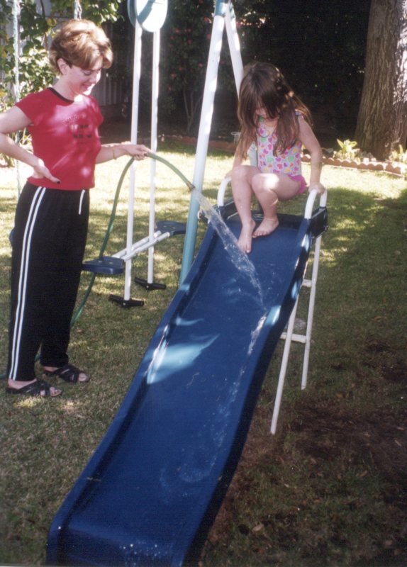 Playing on her water slide. There's really nothing like January in Southern California...