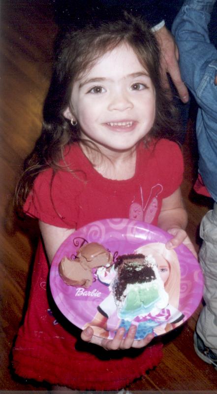 Cake and ice cream, on a Barbie plate.