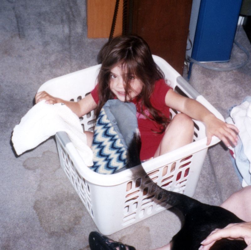 Lucinda in the laundry basket. Compare this to