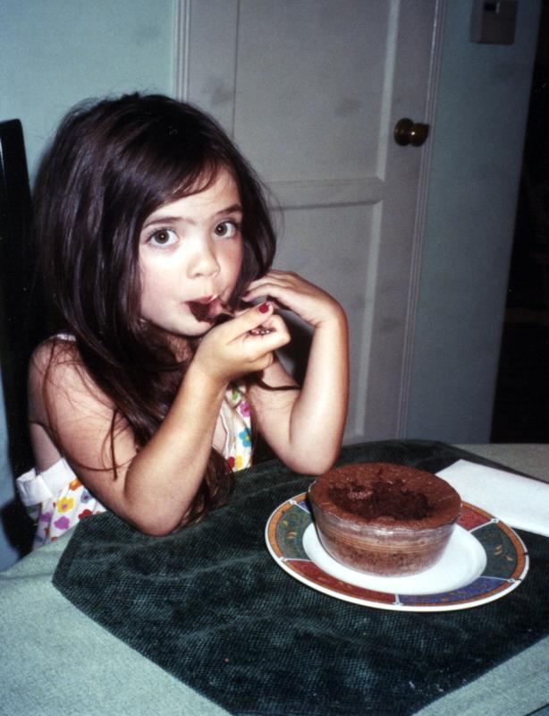 Having a chocolate souffle.