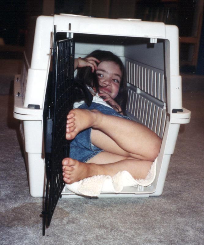 Trying out Buddy's new dog crate.
