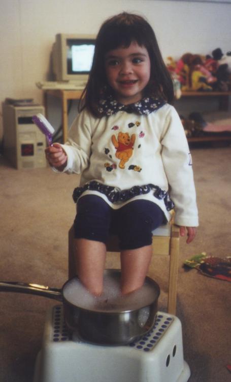 Soaking her feet for a pedicure.