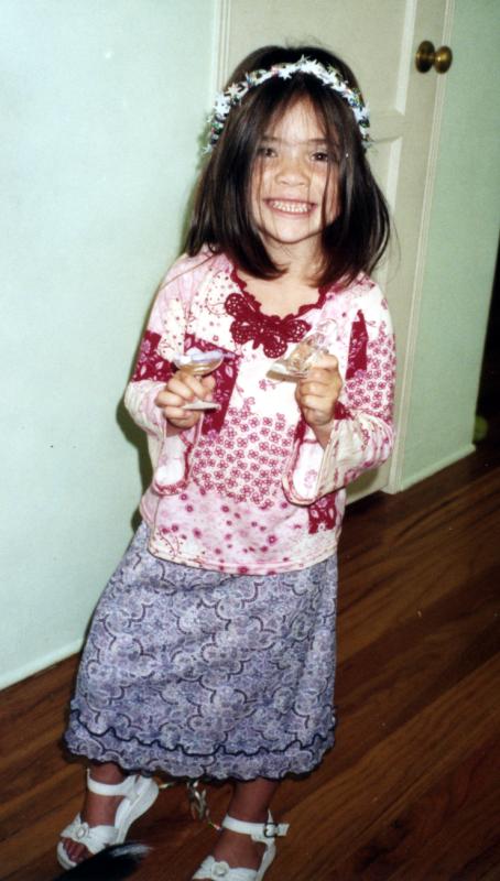 Showing off the stuff she got at the wedding