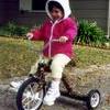 |  Dec 24, 2001 Riding her leopard tricycle.