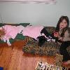 |  Nov 6, 2004 Trying on the dinosaur feet