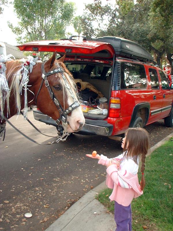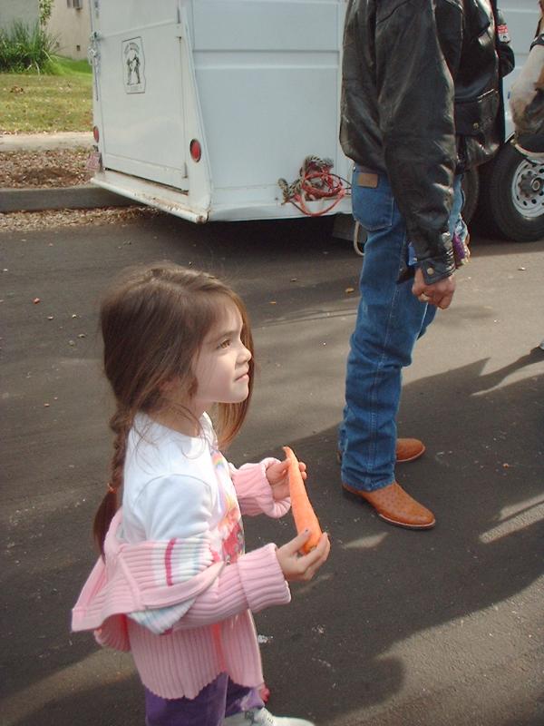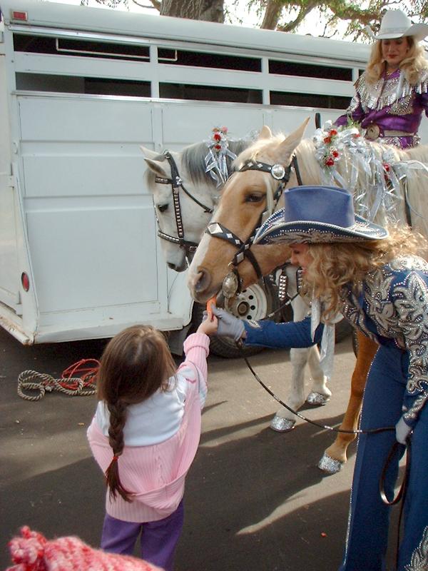 |  Jan 1, 2004 Holding a carrot for one of the horses from the Rose Parade