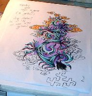The plan now is to continue coloring in the rest of the piece with this same color scheme. After all that is done, Shannon has plans for purple background for it. So we will be working on this piece for a while.